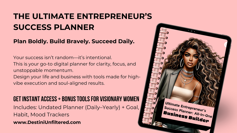 The Ultimate Entrepreneur’s Success Planner helps you set meaningful goals, track your habits, map out your days and months, and reflect with intention—so you don’t just stay busy, you stay in purpose.