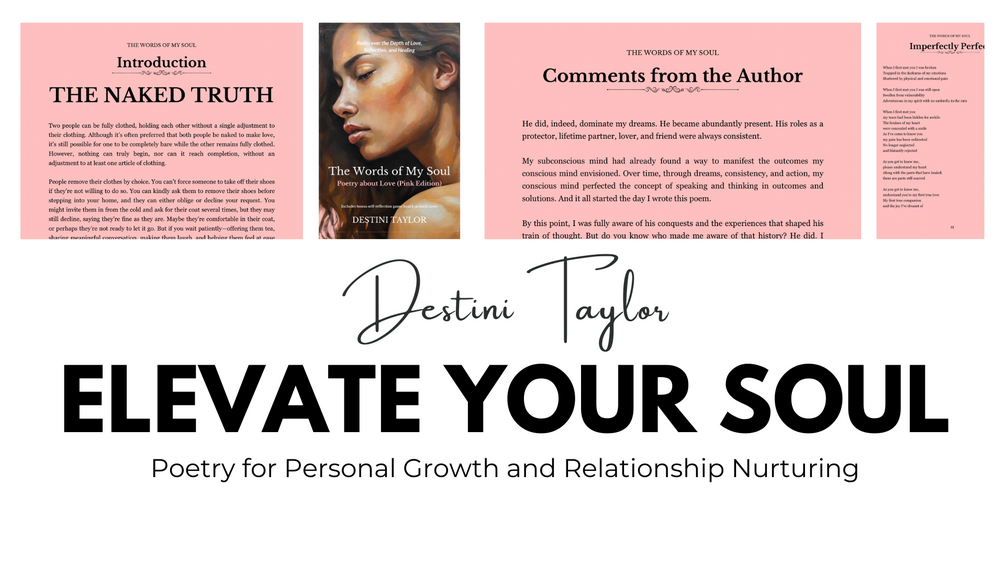 The Words of My Soul: Poetry About Love (Pink Edition) is not just a poetry book—it’s a love letter to the woman rediscovering her worth.