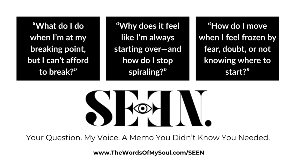 Inside SEEN, you’ll receive a custom audio message (2–5 min) that responds directly to the question sitting heavy on your heart.